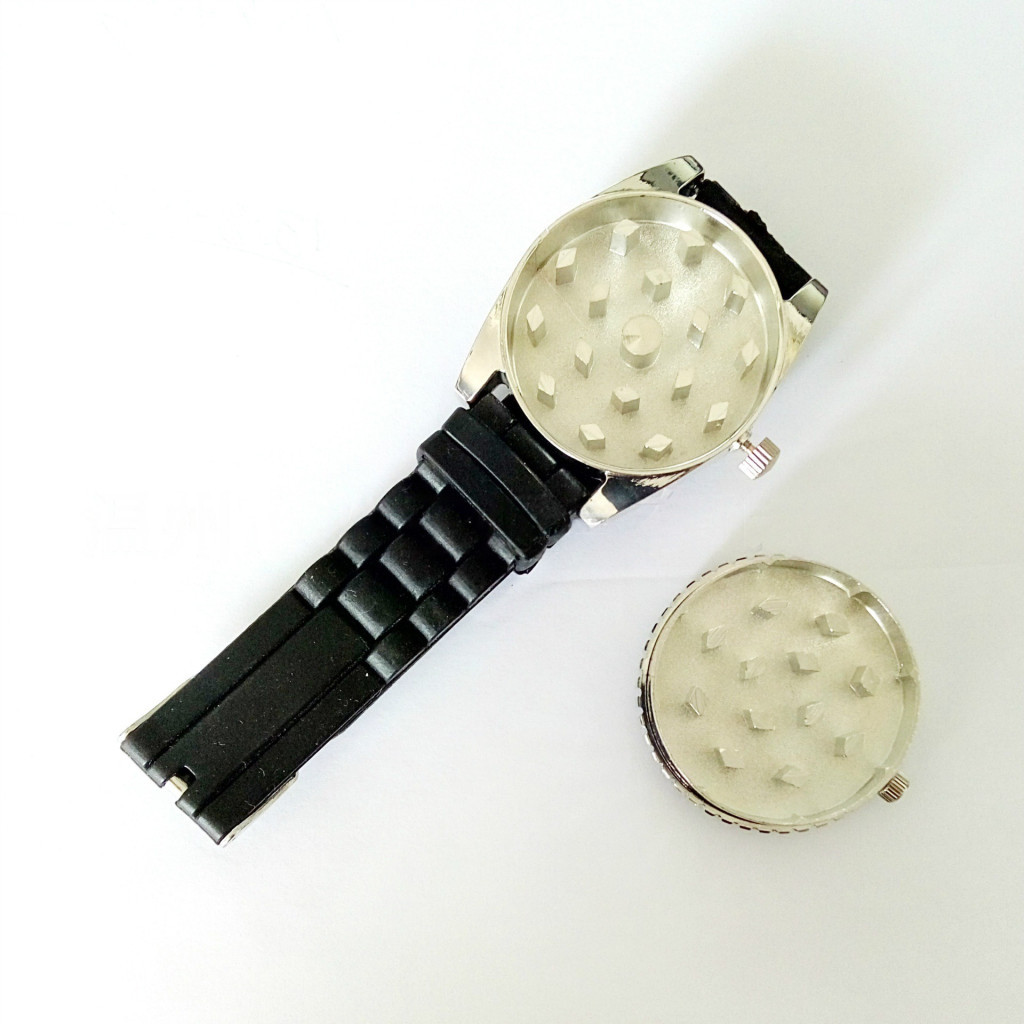 A használata rendkívül egyszerű: a számlap felemelésével hozzáférhetsz az őrlő részhez, ahol elhelyezheted a feldolgozni kívánt dohányt vagy fűszert. A karóra alján található gyűrű lecsavarásával pedig könnyedén cserélhető az elem.
