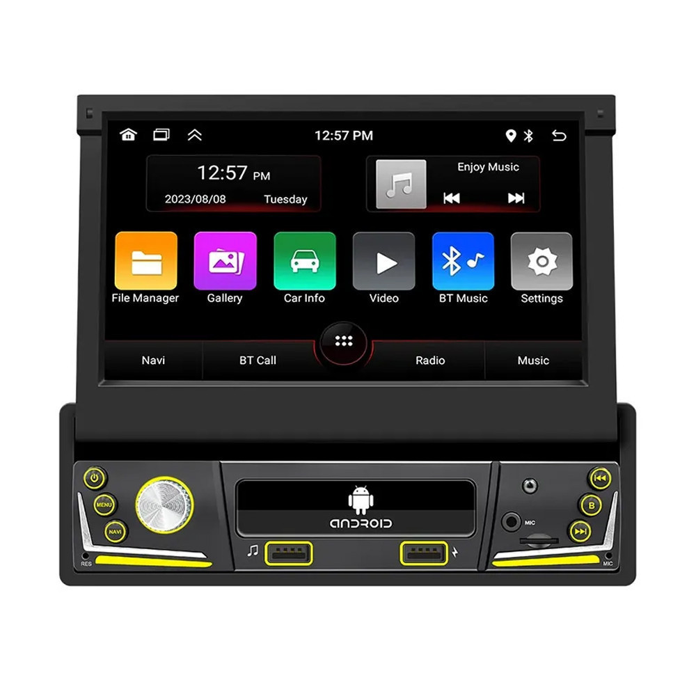 Android autós multimédia lejátszó kihúzható érintőképernyővel - GPS navigáció, WiFi, CarPlay, Rádió, 7 színű gombvilágítás