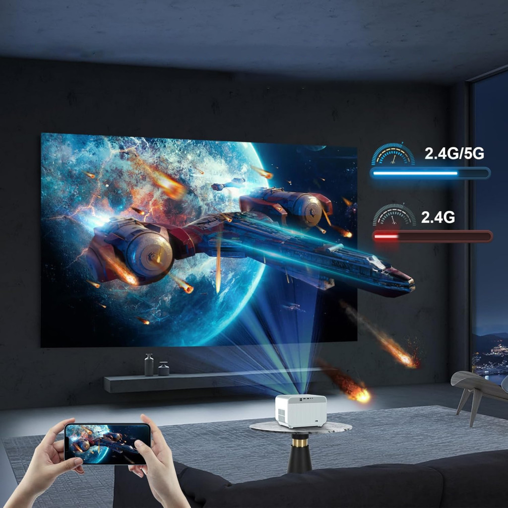 FunFlix A1 Okos Projektor – 1080P, 4K támogatás, Android TV, WiFi 6, Bluetooth 5.2