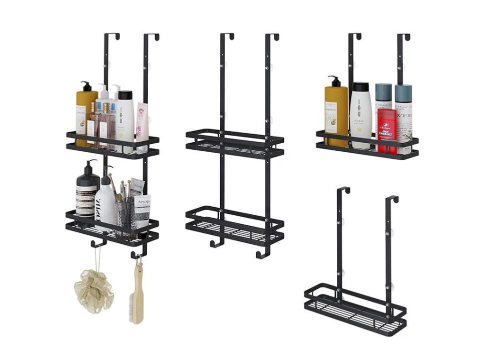 Fúrás Nélküli Helytakarékos Zuhanypolc – 2 Kosárral és Törölközőtartóval