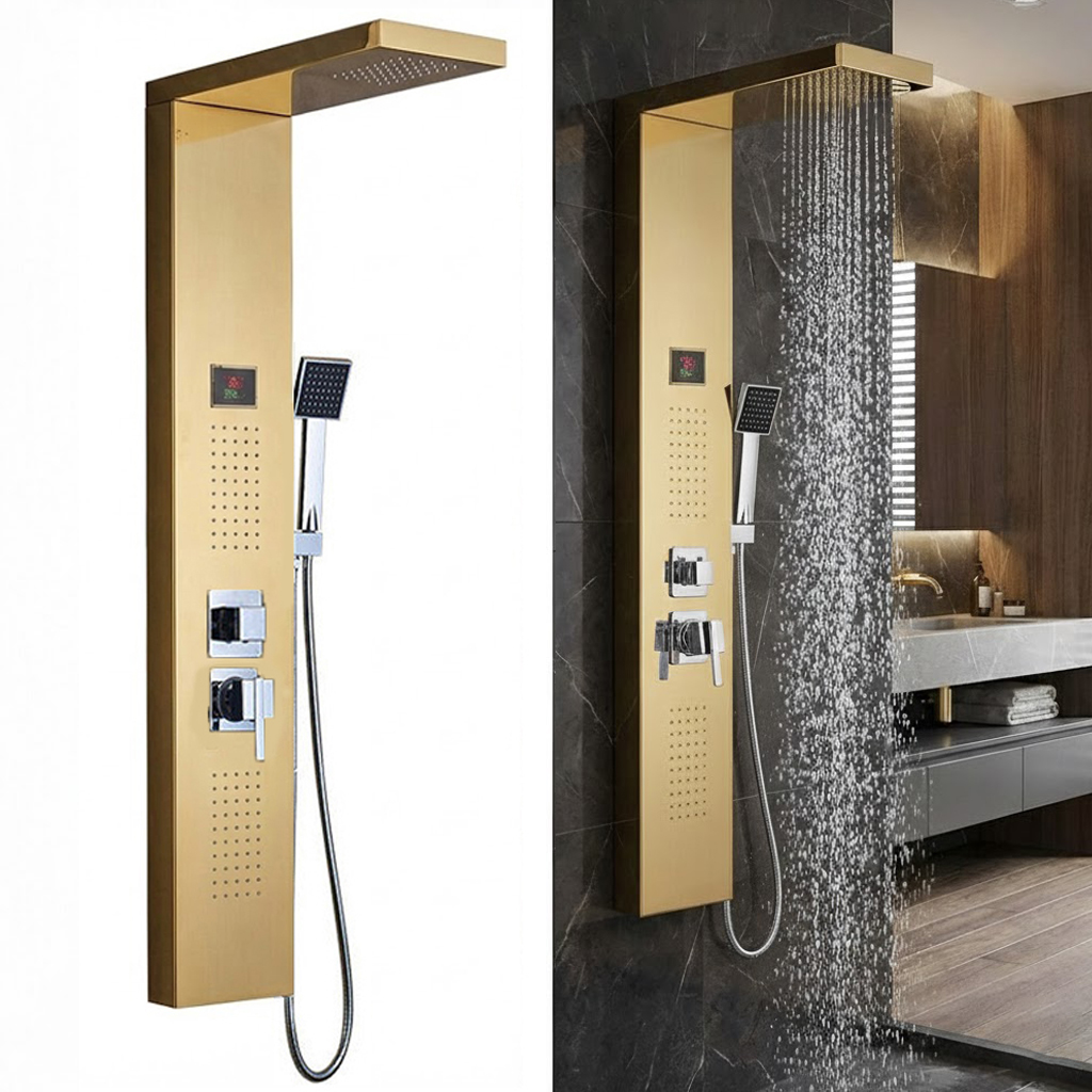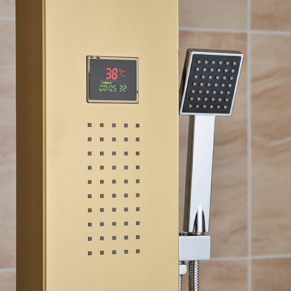 Modern falra szerelhető hidromasszázs zuhanyrendszer - vízhőmérséklet-kijelzővel - arany