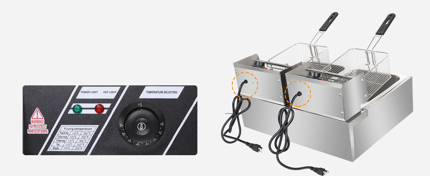 A nagy teherbírású rozsdamentes acél szerkezet hosszú élettartamot biztosít, intenzív használat mellett is. Az U-alakú rozsdamentes acél fűtőszálak egyenletes hőelosztást biztosítanak, így az ételek egyenletesen és gyorsan sülnek át. A pontos hőfokszabályozást beépített termosztátok segítik.