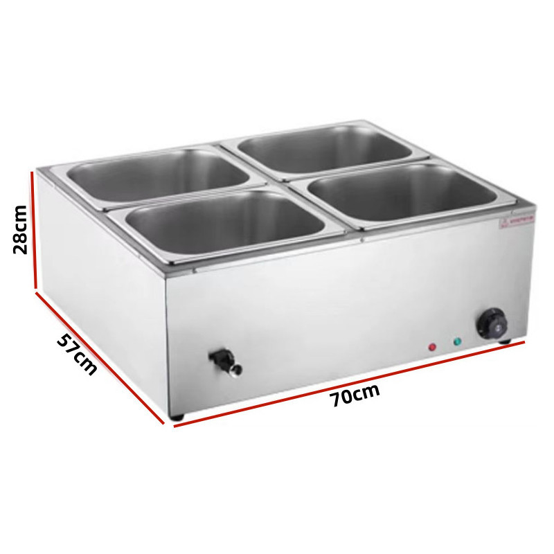 Ez a praktikus elektromos ételmelegítő ideális megoldás készételek, köretek, szószok vagy levesek melegen tartására vendéglátóipari és otthoni környezetben egyaránt. Kompakt méretének és egyszerű kezelésének köszönhetően könnyen beilleszthető konyhákba, büfékbe vagy rendezvények kiszolgálásához.