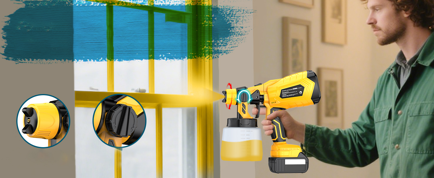 Az állítható áramlásszabályzó gomb segítségével pontosan beállítható a kijuttatott festék mennyisége az adott munkához. Gyorsabb és kényelmesebb megoldás, mint a hagyományos ecset vagy henger, miközben csökkenti a festékpazarlást és egyenletes, professzionális felületet biztosít.