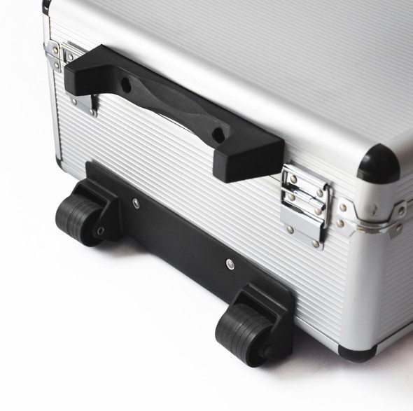 Az összes felszerelést alumínium bőröndben tárolják, amely kerekekkel van felszerelve a könnyebb kezelés érdekében.