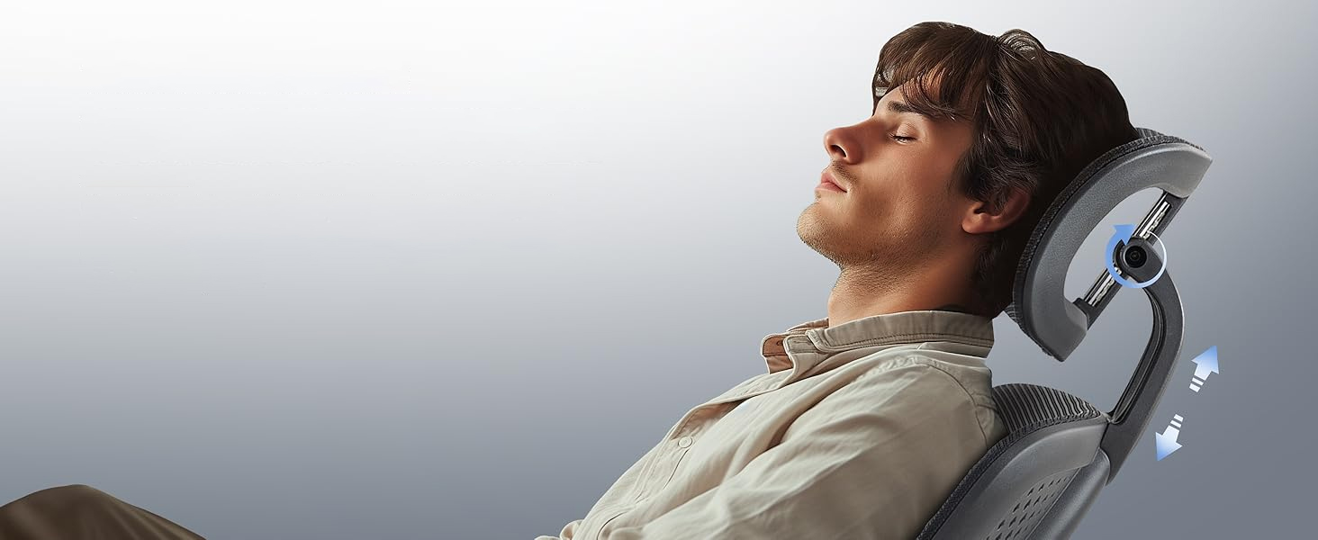 A fejtámla magassága és dőlésszöge is állítható, így tökéletesen igazodik a testedhez. Akár 45°-os állíthatóságával optimális alátámasztást biztosít, legyen szó munkáról, monitor előtti tevékenységről vagy pihenésről. Támogatja a helyes testtartást és csökkenti a nyaki terhelést.