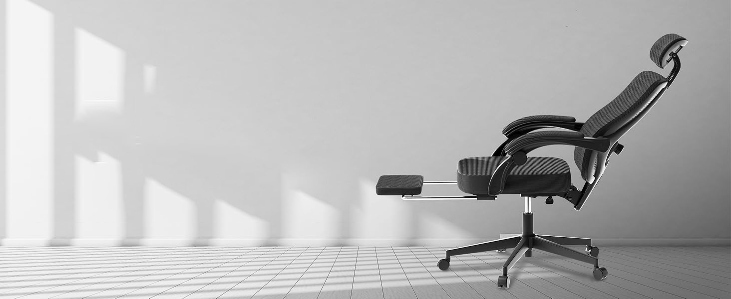 A háttámla 135°-ig dönthető, a beépített lábtartó pedig felhajtható, így könnyedén megtalálhatod a számodra ideális pozíciót – legyen szó koncentrált munkáról vagy egy rövid pihenőről.