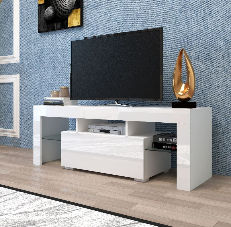 Ez a modern TV állvány 12 színű LED lámpával rendelkezik. A fehér TV szekrény remek tároló tuladonságokkal bír.