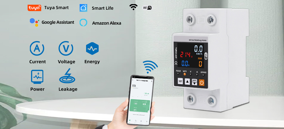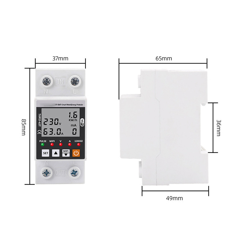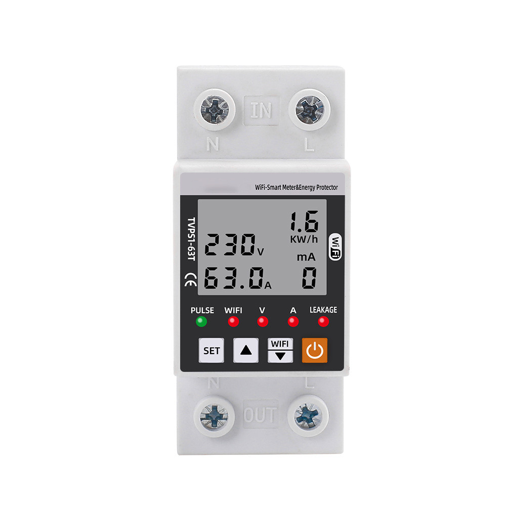 A többfunkciós elektromos fogyasztásmérő az áramfelhasználás folyamatos nyomon követésére szolgál. Nagyméretű LCD kijelzővel rendelkezik, amely valós időben megjeleníti a feszültséget, az áramerősséget és a teljesítményt. A felhasználók egyszerűen beállíthatják a túl- és alulfeszültség határértékeket, az áramkorlátot, a szivárgó áram riasztást, valamint az automatikus visszakapcsolási időt.