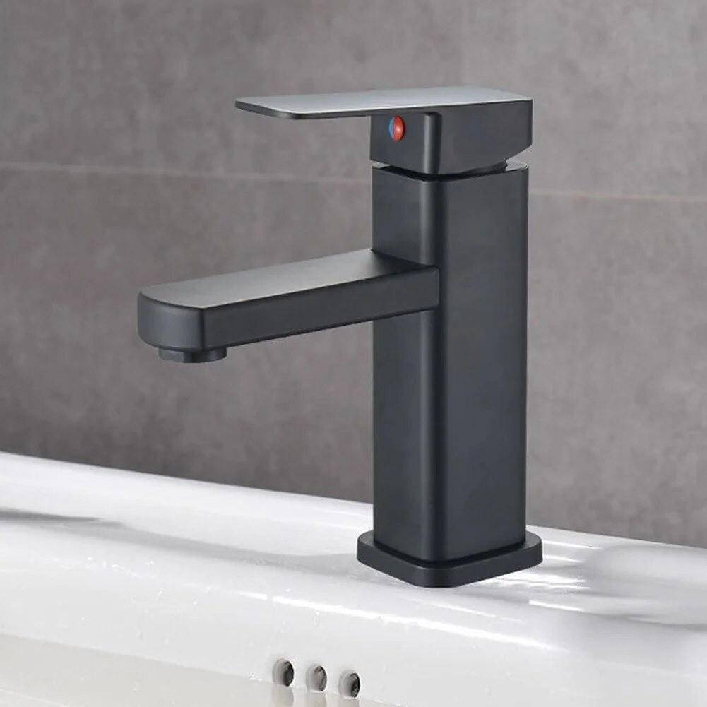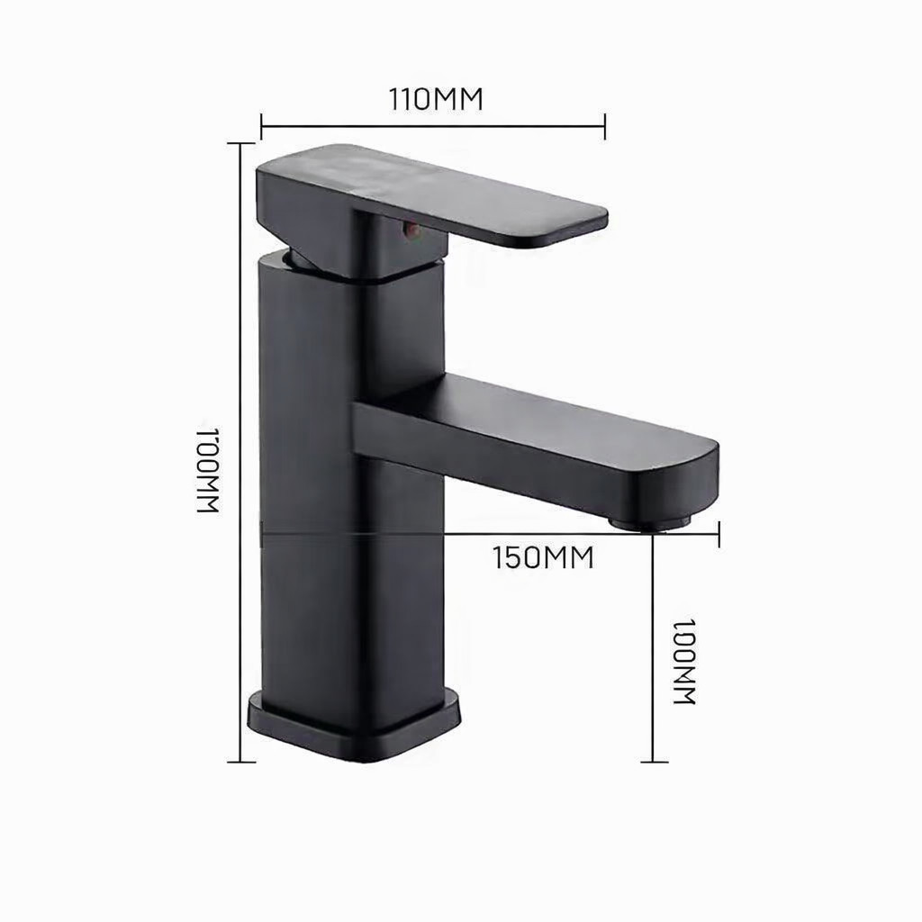 Letisztult, szögletes formavilágú mosdó csaptelep elegáns fekete felülettel. Rozsdamentes acél testének köszönhetően rendkívül tartós, korrózióálló és hosszú élettartamú, így ideális választás mindennapi használatra.