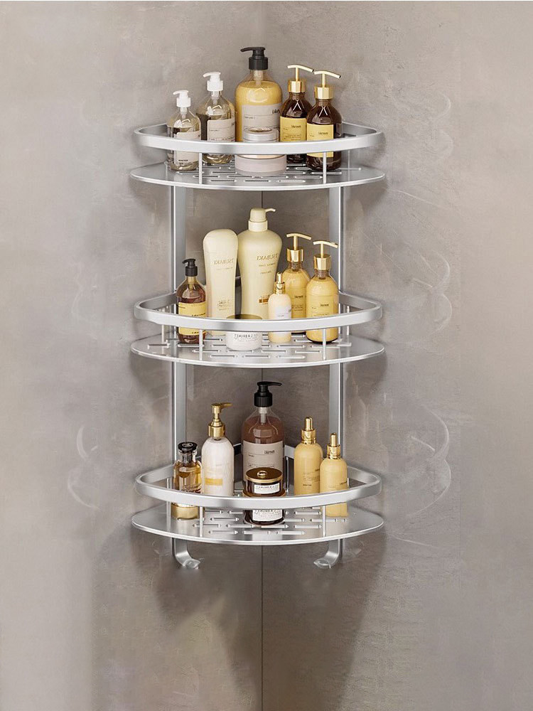 A háromszintes sarok fürdőszobai polc ideális megoldás a samponok, tusfürdők, borotvák és kozmetikumok rendszerezett tárolására. A sarokba illeszkedő kialakítás helytakarékos, mégis nagy tárolókapacitást biztosít.