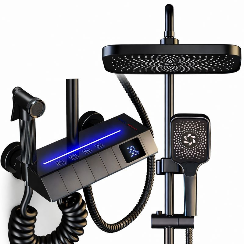 Prémium Piano zuhanyszett digitális kijelzővel – esőztető fejjel és kézi zuhannyal, fekete
