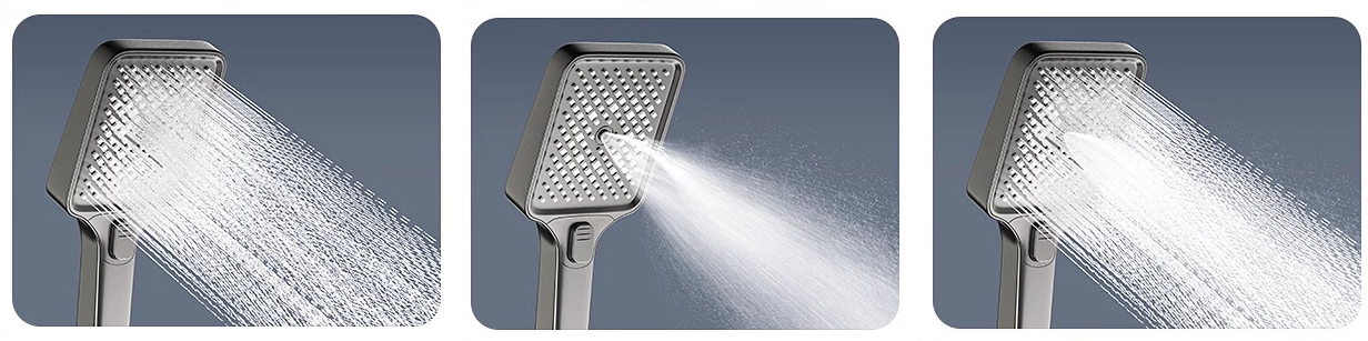 Kézi zuhanyfej három vízáramlási móddal: A kézi zuhanyfej összesen három vízkimeneti móddal rendelkezik.